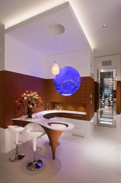 The contemporary home bar takes the luxury part of owning a home bar and supersizes it even more with its sleek, minimalist look that has elegance written all over it. Is this something that you need in your home? Check out the pictures below and decide for yourself!