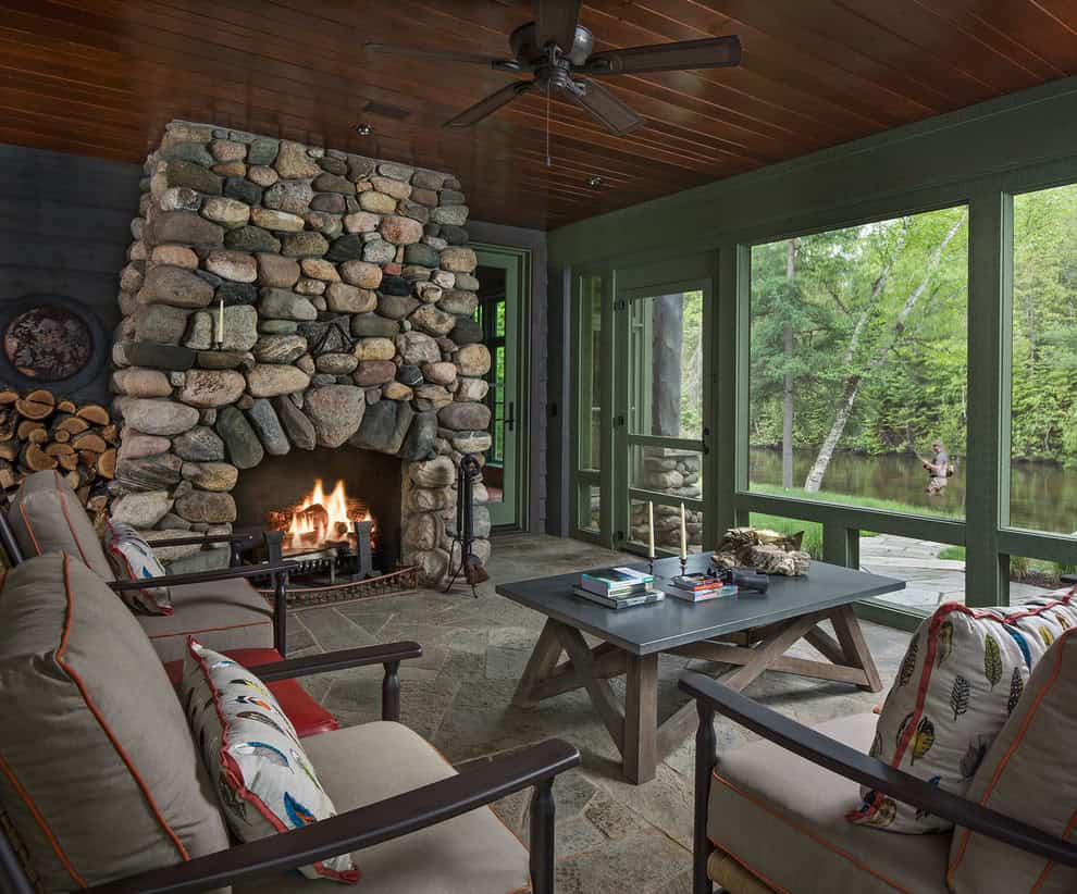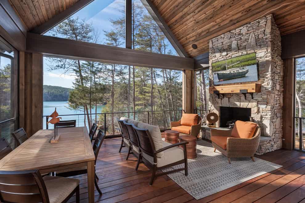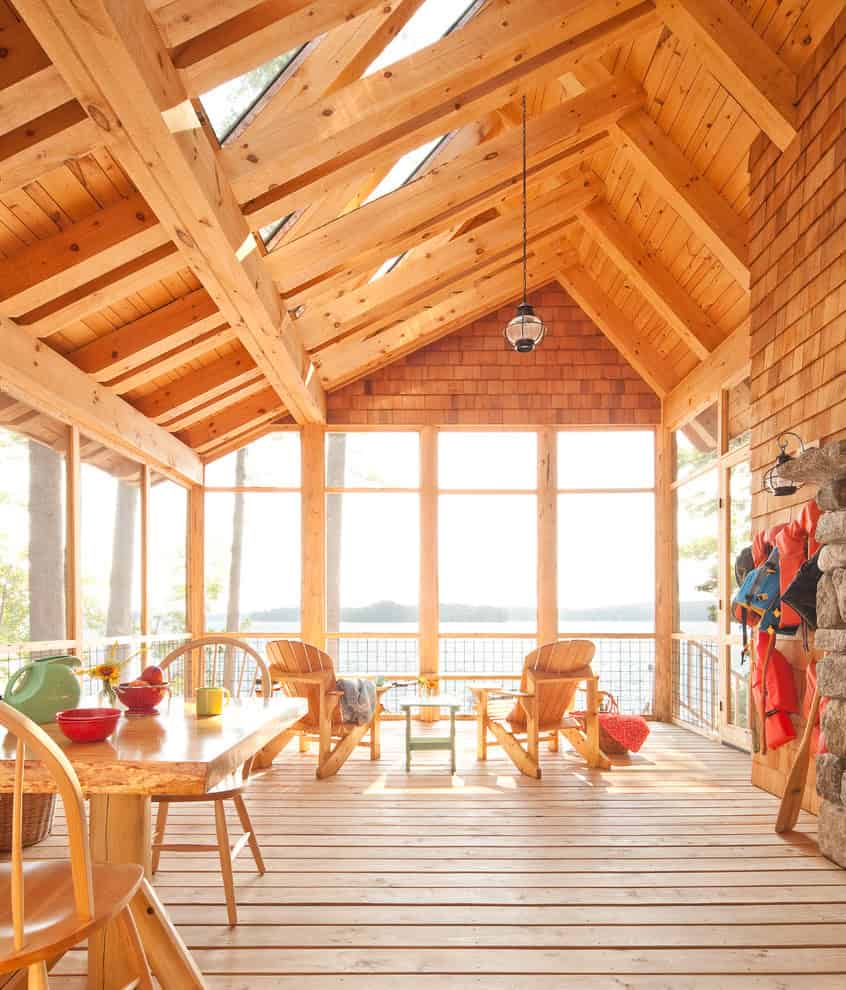 The rustic porch is the best place to spend your days if you live in an area surrounded by nature. Just like the original porch idea, the rustic porch intends to bring the living room outside when the weather is sufficient. But there are plenty of things that you can do to make sure that your rustic porch can be used even when the weather is less than ideal. You can install screens or you can enclose it in other ways and build a fireplace that will keep it warm and cozy.