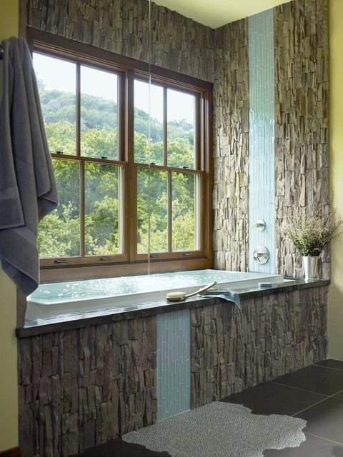 There are countless combinations of the basic elements which primarily depend on spatial abilities, desires, habits, ways of use and budget, and in short, we can define three types of bathrooms: compact, wellness and bathroom with open spaces. The most common model is a compact bathroom. The bathroom can be designed in all known styles. If you are willing to add rustic touch to your bathroom, the decorative stone is the perfectly solution. You can set decorative stone on one or more walls, and your bathroom will look pleasant and elegant. Here are some inspiring examples how to make stone bathroom to will be your favorite place for relax. Enjoy!