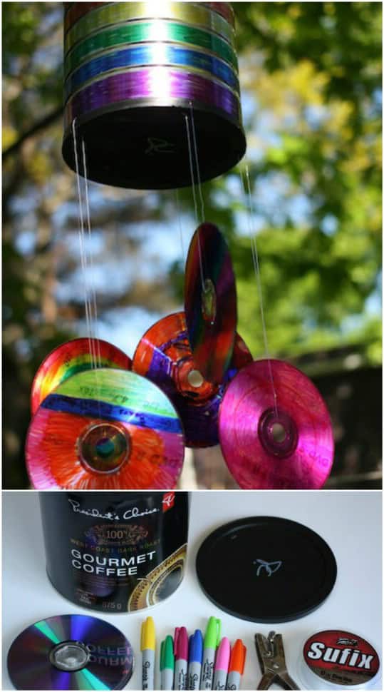 16. Upcycled Coffee Can CD Wind Chimes
