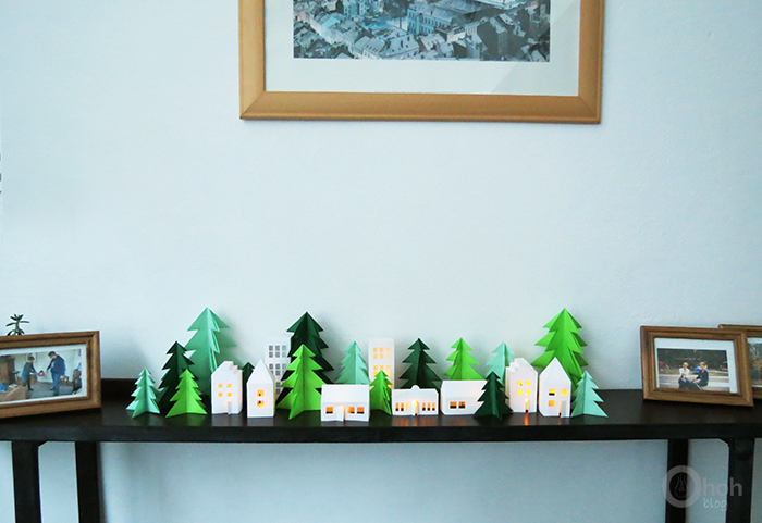 3. DIY Christmas Trees and Glowing Houses from paper
