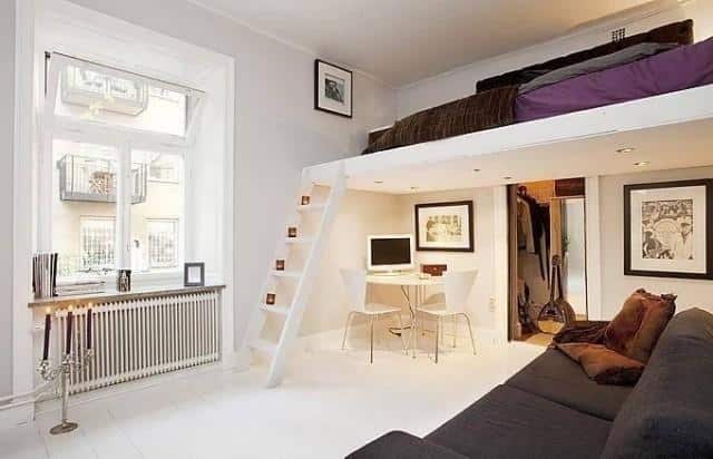 Loft beds are a lifesaver in small studios. Use the space underneath for your sofa, entertainment center, or wardrobe. Choose a design that blends into your overall layout to avoid visual clutter.