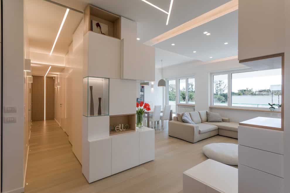 The best way to seamlessly bridge slightly different room characters in your contemporary home is by connecting them with a contemporary hallway that will provide a middle ground.