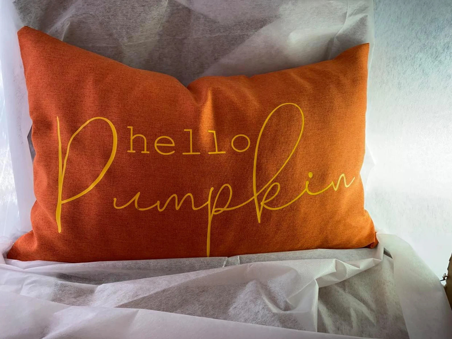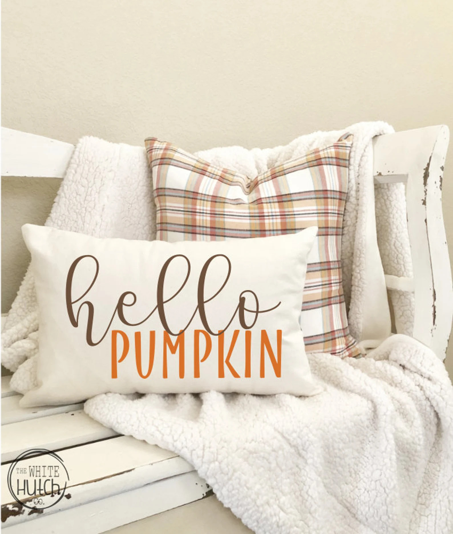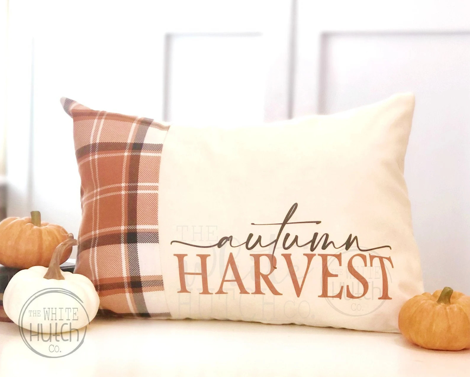 4. Adorable Plaid Pumpkin Trio Lumbar Pillow