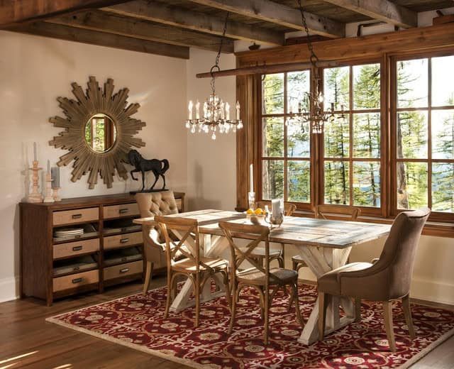 It is not hard to guess which part of the house comes next as part of our most recent rustic interior design style showcase in which we have so far featured the rustic: kitchen, bathroom, bedroom and living room. You guessed right, today, we are going to be talking about the rustic dining room interior design. There is no need to say what makes a dining room to be rustic because we have had so many collections in which we have explained different aspects of the style by now. The most important features are easy to see right away by looking at the following pictures – vast use of wood as a material for furniture as well as construction, lots of accents and small details which ends up in having a very warm and cozy environment.