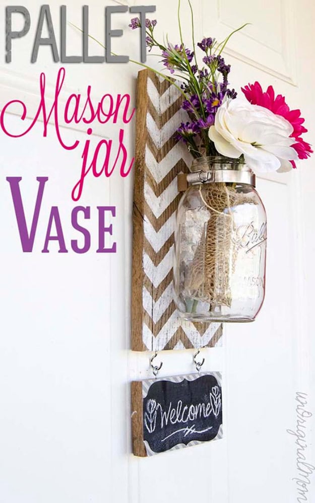 Chevron Pallet Mounted Hanging Mason Jar Vase