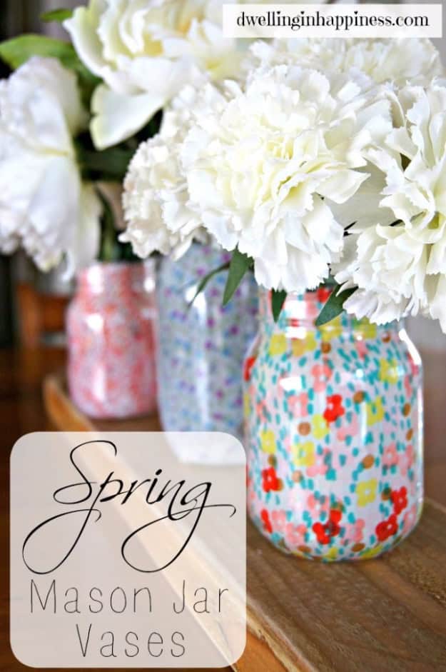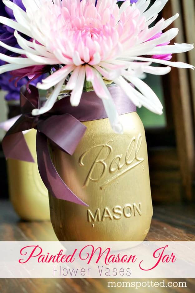 Welcome to a new collection of DIY ideas in which we are going to show you 17 Awesome DIY Mason Jar Vase Designs You Can Make In No Time. The following designs are going to introduce you to a bunch of ideas that will show you just some of the things that you can use your old mason jars for. After you’ve chosen the right project, you can click on the link below the image and be taken to the step-by-step tutorial that will show you how to make it. When you’re done, you’ll end up with a free decoration that can be the centerpiece of your table and the focal point of your room. Enjoy!