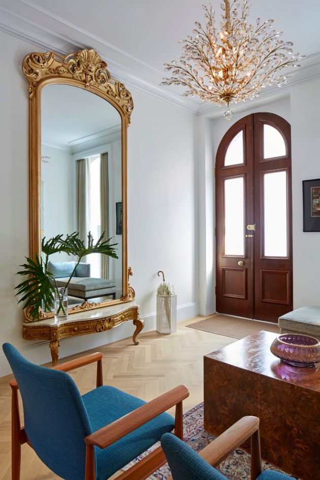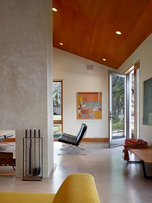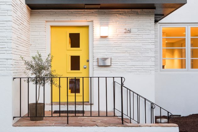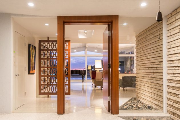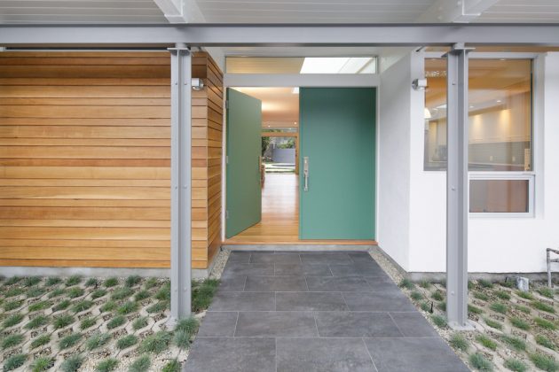The mid-century modern entrance takes care of all of that in a stylish way and you are going to see that in all of the photos below.