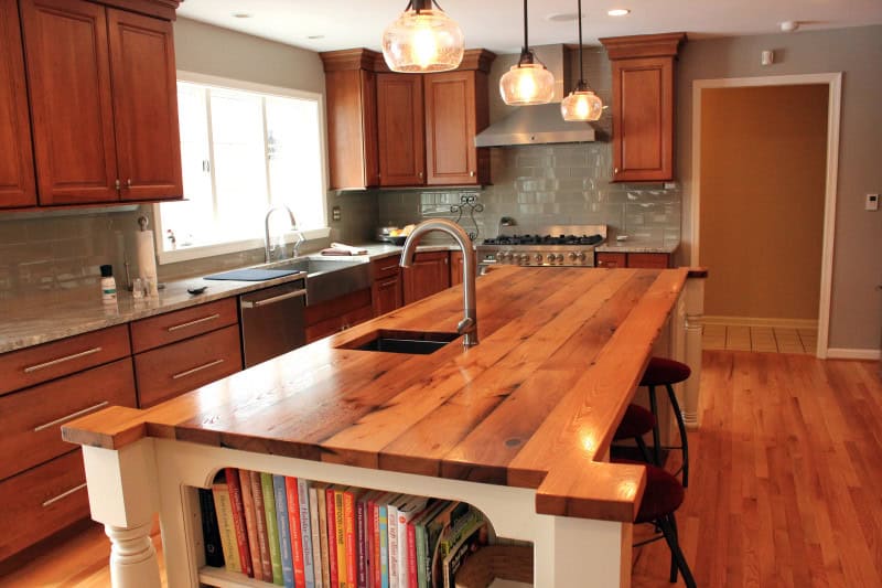 17 Charming Kitchen Countertop Designs Made Of Reclaimed Wood