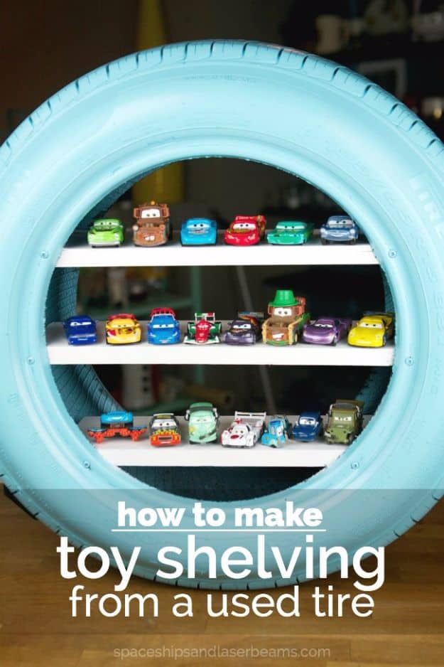 8. DIY Toy Shelves From A Used Tire