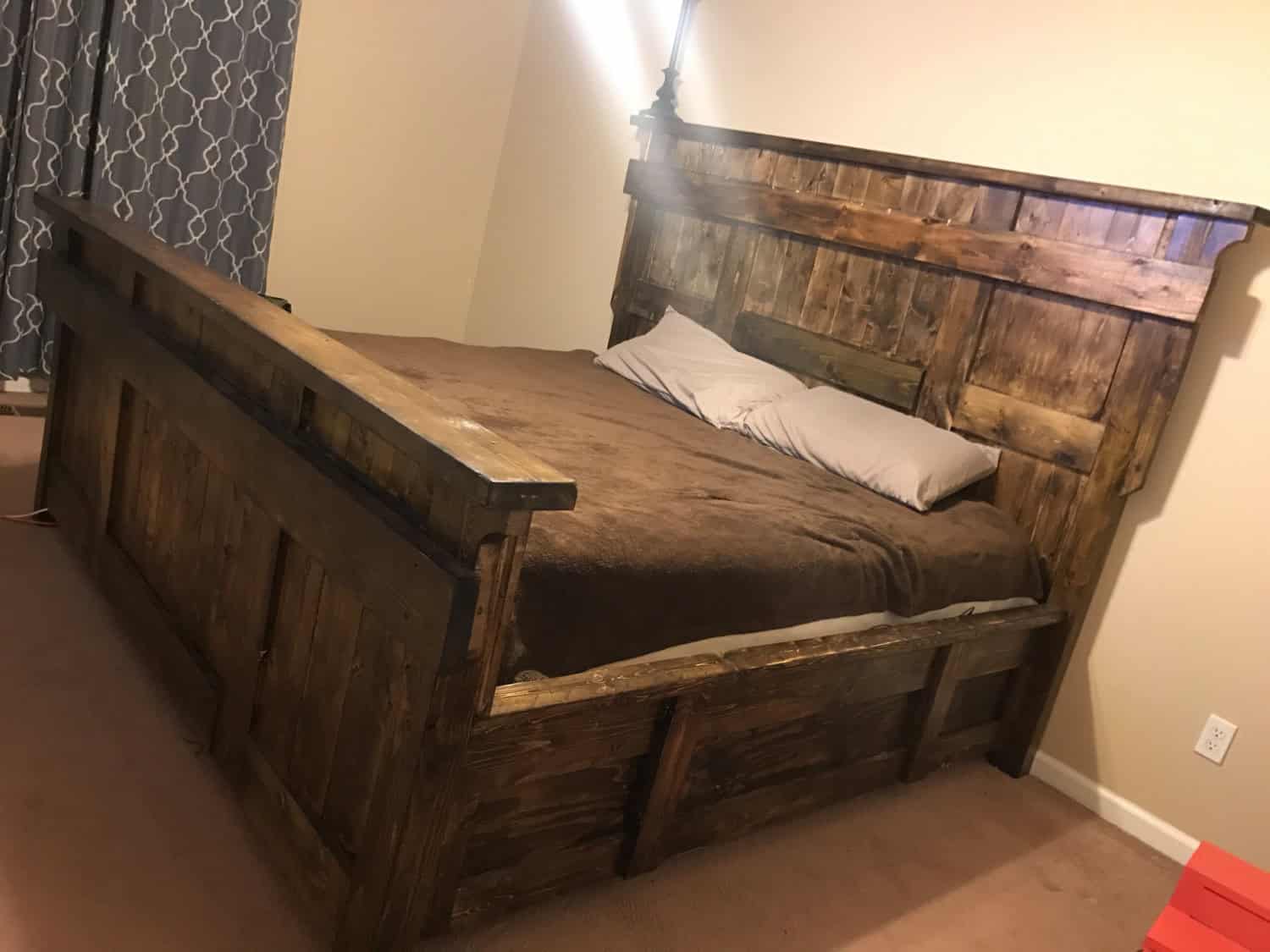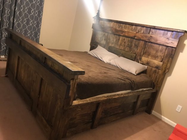 Reclaimed Wood Pallet Bed Frame with Blue Accents