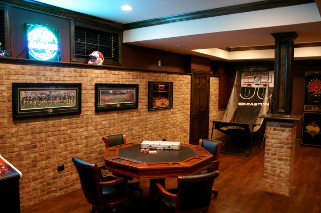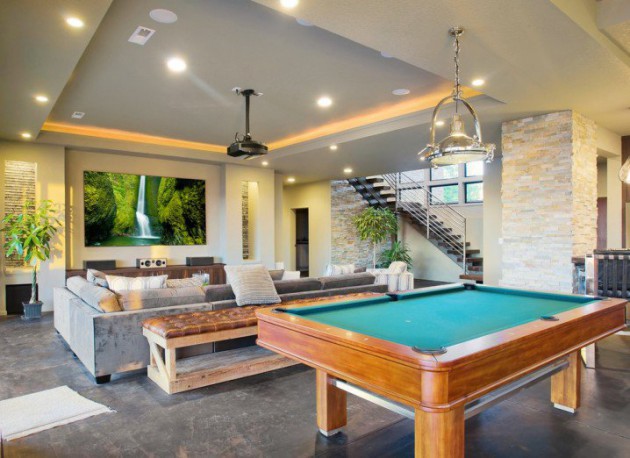 For first, you need to decide what kind of activity you like the most. You can set up some pool table, and big pendant lights above. If the room have enough space, you can choose some corner and set some big TV on the wall, and comfortable chairs, to watch your favorite football game with pleasure. If you like playing cards or other games, you need to set one table with a couple of chairs. See our suggestions below, and you will find many creative ideas!