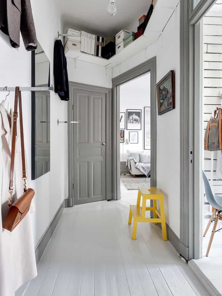 But wall decor isn’t the only thing that you should focus when it comes to the design of the hall. Where space permits, the Scandinavian hall design encourages hallway furniture that doubles as storage. This is not just a great idea to store a lot of your stuff, but it also can enable you to display some of your favorite items in a place that has to be used by anyone who enters your home.