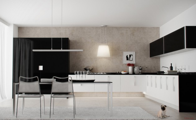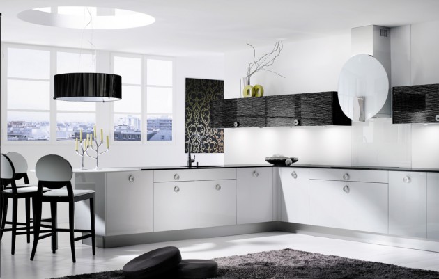 If you are thinking about replacing your old kitchen or renovating an apartment or move into a new area, black & white kitchen might be right solution for you. We offer you a bunch of ideas that will inspire you in which direction to go and how to design layout and form of the elements as well as the countertop and the details, but before that you need to know a few rules that apply to this combination. There is no need to add a lot decorations and details in other colors, because the place will seem overcrowded. It is better in this combination to dominate the white than black, because too much black can close the space and make it look smaller than it really is. Wooden floors will warm up the room, and if they are colored in white, will highlight the look of the cuisine. Now see our proposals, and find idea how to decorate your black & white kitchen!