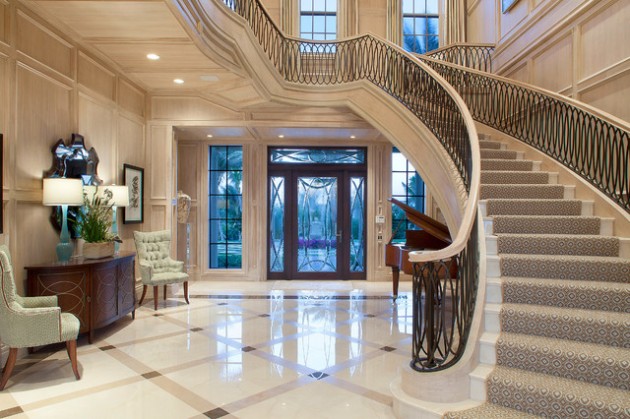 All rooms in your home can look beautiful if properly decorated in traditional style. If you want your staircase that connect two different floors to look wonderful, you can also make it in a traditional style. Use more wood and will not be wrong. Wood gives a great feeling of warmth and comfort to any space. Take a look at these amazing examples and choose the right one for your home decor!