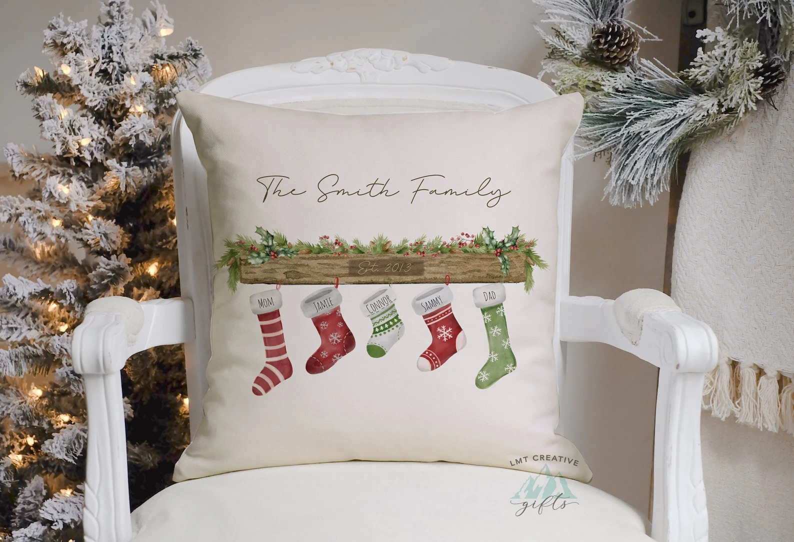 3. Stocking Family Personalized Throw Pillow Cover