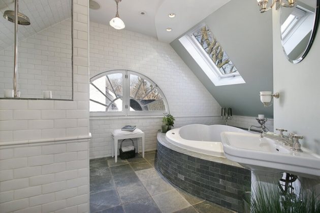 Skylight in the bathroom can be in any shape and design that you can imagine, following the structure. Skylight can be set in every style of the bathroom, no matter if you bathroom is traditional, industrial, or maybe contemporary. In our today’s collection, we present you 17 majestic bathroom design ideas with skylight, in many different styles. All of these inspirational examples are beautiful, and they might serve you as inspiration, if you have a lack of ideas. Take a look below, see our collection of 17 Outstanding Ideas For Decorating Bathroom With Skylight, and you will remain inspired for sure!