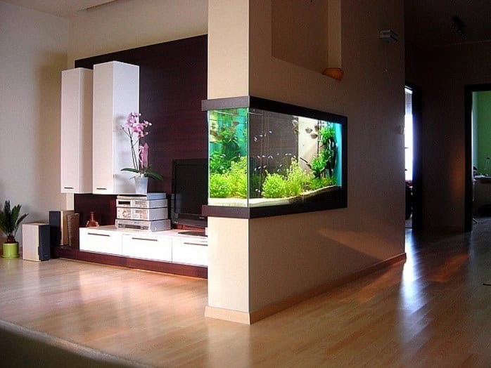 Aquarium regardless of the dimensions enters a feeling of liveliness, and can improve your working and living space. The selection is great and the choice is yours. These words are sufficient, it will in any case contribute to the beauty and warmth of the interior. Aquariums in addition to adorn your home, bring peace and prosperity, enhance the movement of positive energy and have a very positive impact. So, if your desire is to enter some kind of aquarium in your home, check our our isnpirational examples and find idea how to do that. Here you can find many different and unique aquarium designs that will attract the attention of everyone. See them and make your choice!