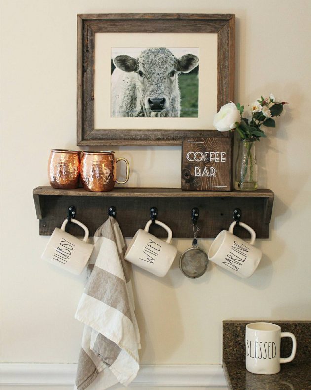 Welcome to a new collection of handmade decor in which we are going to show you 17 Rustic Handmade Mug Rack Designs For Your Kitchen. You’ll see plenty of creative designs below and you should know that all of them are handmade. Unfortunately, there are no tutorials on how to make them by yourself but you will notice that they are very simple and easy to follow just by studying the designs with your eyes. Enjoy!
