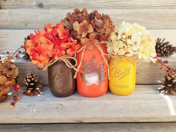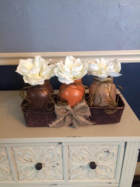 This time around, we are going to be showing you ideas that can help you decorate a certain corner of your home as well as inspiration for making centerpieces for your coffee and dining table. The fall mason jar decor ideas that you’ll see in this collection are a great way to find ideas that won’t require anything more than a couple of old mason jars, some paint and some free time to make.
