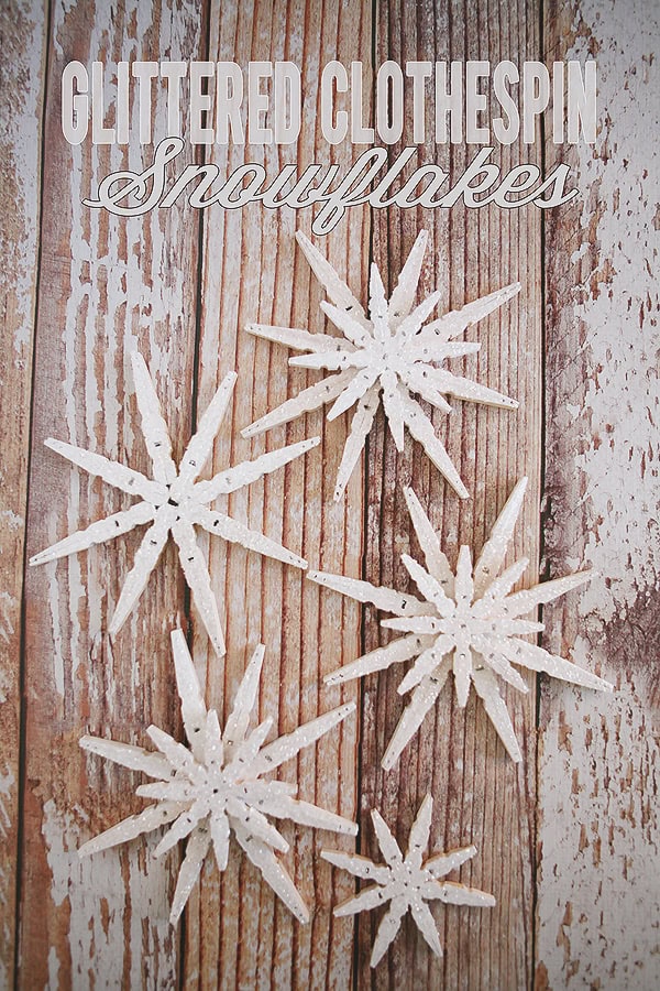 15. Glittered Clothespin Snowflakes