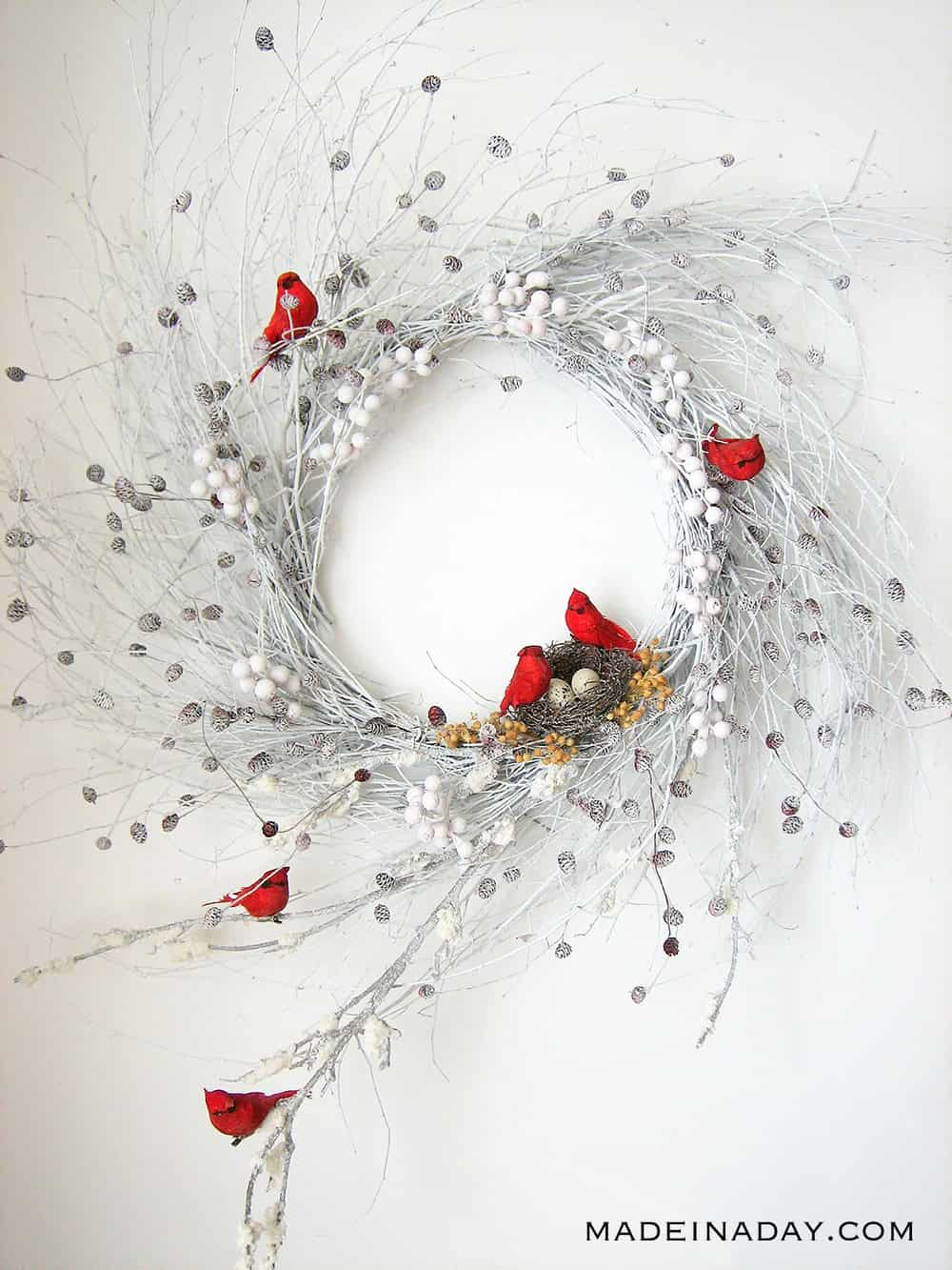 6. SNOWY RED CARDINAL WINTER WISPY WREATH