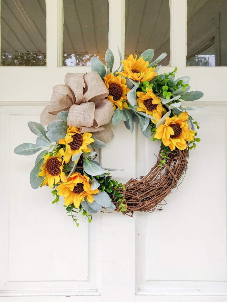 15. Boxwood, sunflower and lambs ear wreath