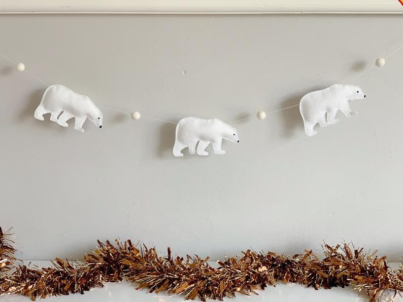 13. polar bear and wool felt ball garland