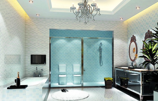 The lighting should be planned to fit with other bathroom elements, because it becomes a very important part of the interior. After all, in the bathroom we begin and end the day. When planning a lighting in the bath, should pay attention to proper positioning of the light source at the sink, for the purposes of showering, shaving, makeup, etc. Check out below, and see some functional ideas how to light up your luxury dream bathroom!