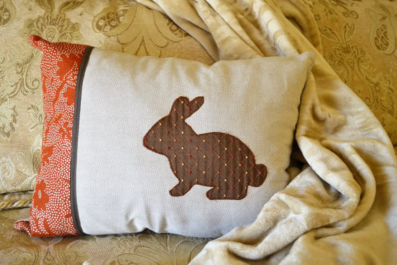 14. Easter Rabbit Decorative Pillow for Spring in Brown, Cream and Rust