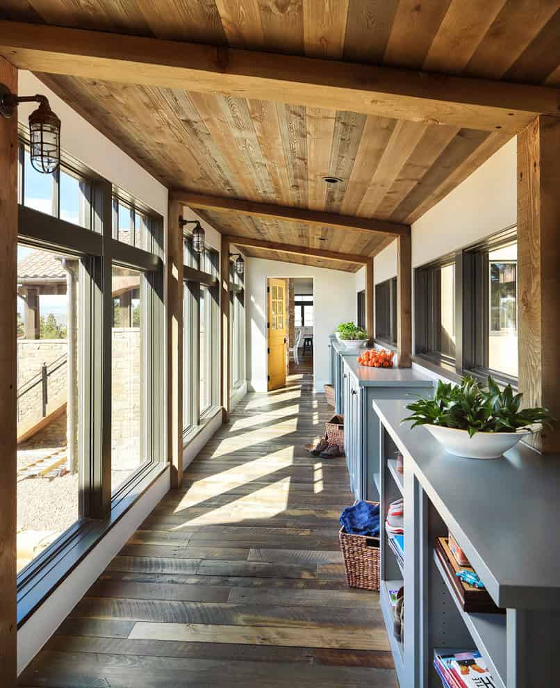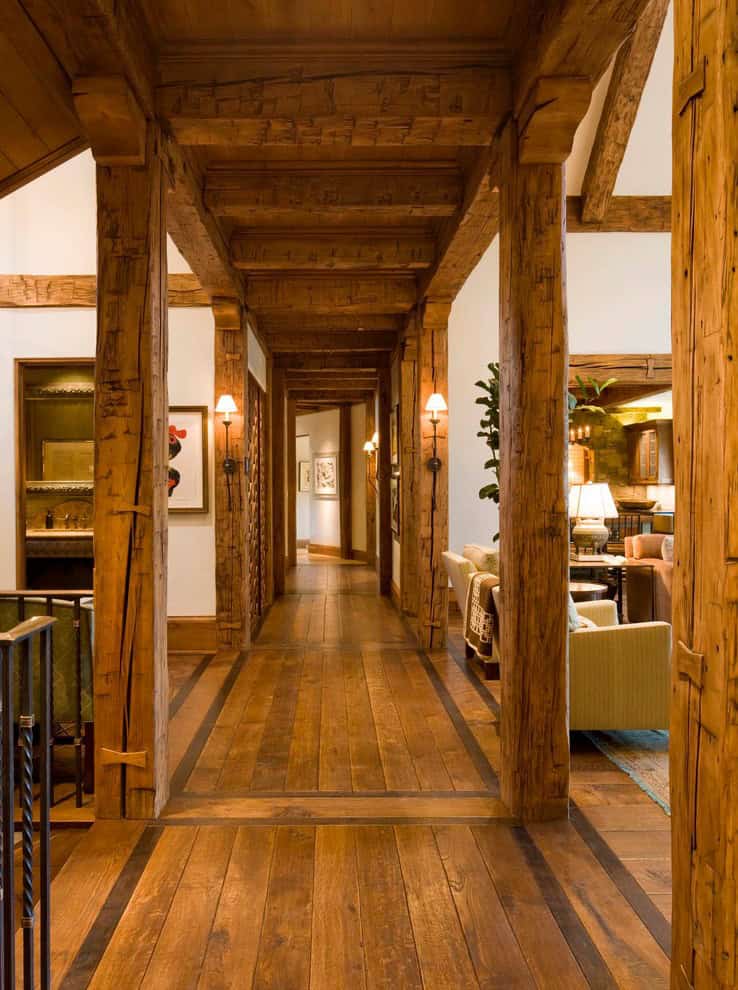 The rustic hallway plays a key role in delivering that rustic feeling that you are connected to the nature in the rustic home. It is not just a pathway between rooms. The hallway in the rustic home is more of a scenic route between two spaces. It usually has large windows that paint vistas of the surrounding landscapes as well as shower the interior with natural light. Furthermore, someone people tend to use the large space of the rustic hallway as display space in which photos and artifacts can be presented while others have found ways to increase their storage space by delegating some of the stuff to the hallway.