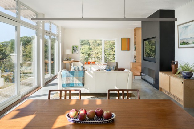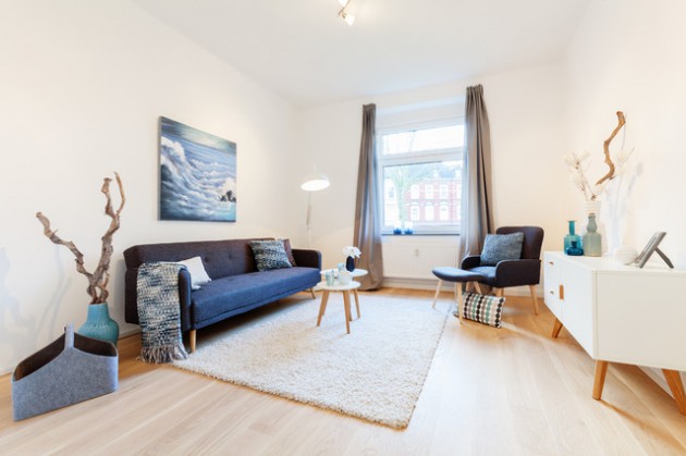 Combined with a dominant white color, neutral colors and wooden accents, the natural light also melds the minimalist features of the Scandinavian style together. All of this puts the Scandinavian living room quite high on the list of popular living room interior designs.