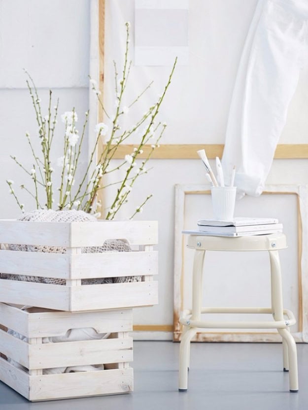 15. Whitewashed Crate Display