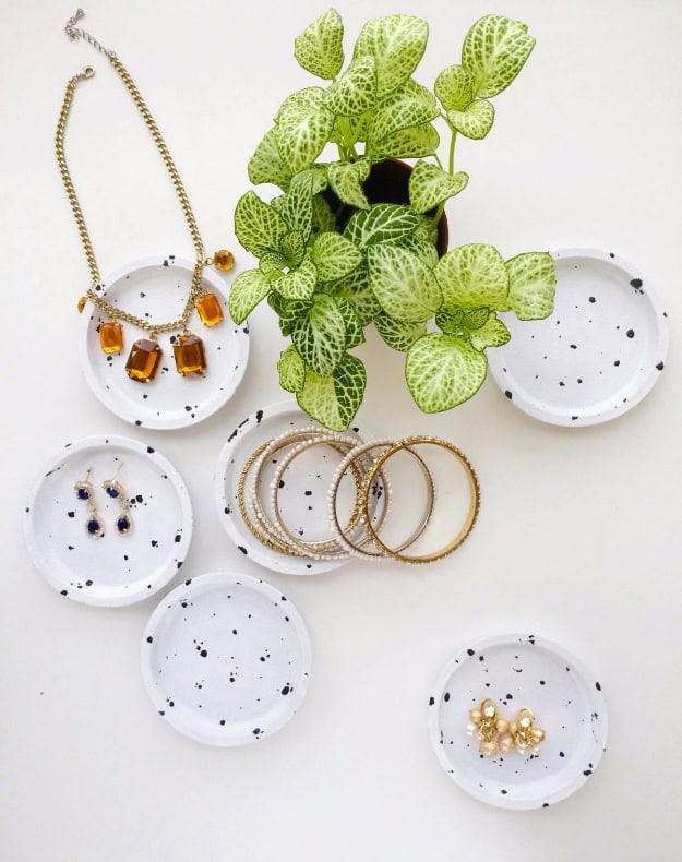 2. DIY Speckled Jewelry Dish From Coasters