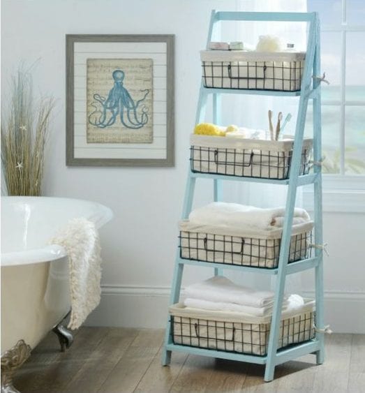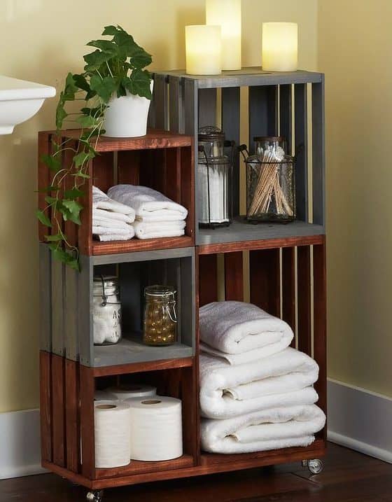 Boxes and baskets made of natural materials, seem interesting, they are not expensive and will save space. Beside that, they look nice on the walls or shelves. Hanging wall shelves in the bathroom can be used to keep many necessary items which are organized in glass or plastic containers. Especially practical can be, also, for storing towels in the small bathroom. Very easy and with little investment you can make practical storage items from pallets or old wooden crates. These are some simple ideas for creating extra storage in the small bathrooms, but if you have a lack of ideas for creating towel storage items, take a look in the following collection and you will remain inspired! Be productive and have fun!
