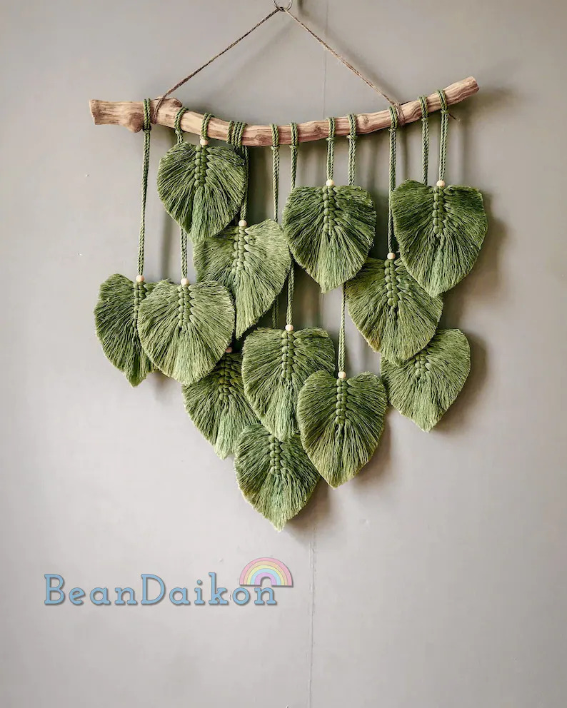 1. Green Leaves Macramé Wall Hanging