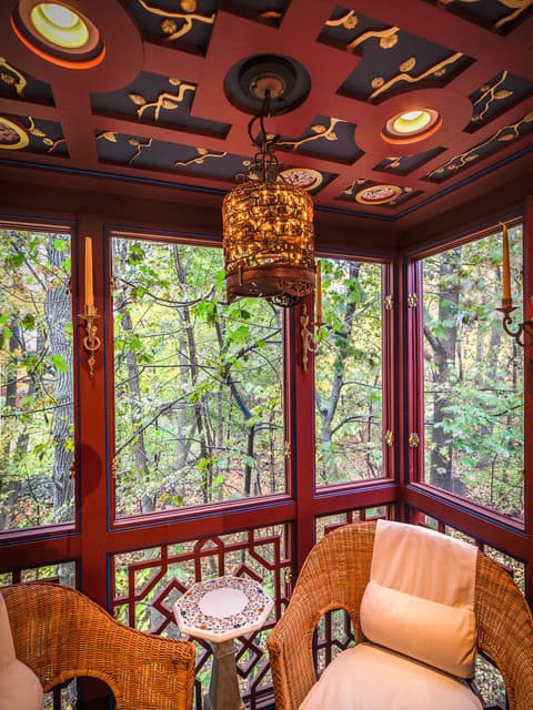 One of the first things that you are going to notice about the Asian porch is that unlike most of the other styles it is not necessarily built directly on the external walls of the house. A lot of times it is built separately where it can have a better view or surroundings. Enjoy!