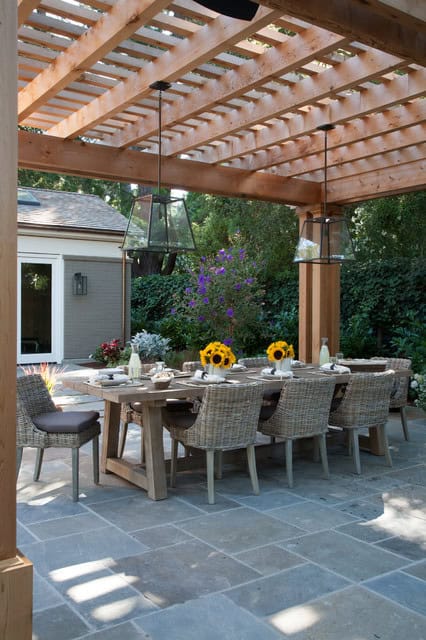 If you want to sit outside when the weather is bad and rainy, you can invest in some cover for your dining room. It can be some simple sun-umbrella, or you can make strong construction. If you are looking for some creative ideas, how to make your outdoor dining room, see our interesting examples you will get an inspiration.