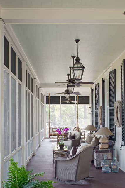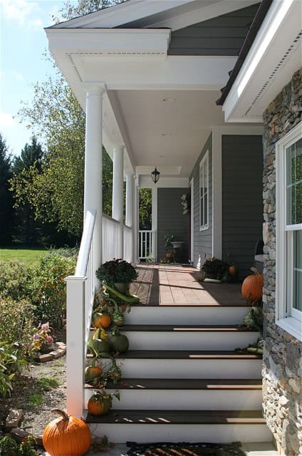 Placing furniture on your porch helps to define the space, and allows you and your visitors to enjoy the area. Depending on the size, the amount of furniture will be different. If your porch is small, one or two chairs can be enough for that space. If it is a large area, more seating can be an option. You can use wicker chairs, tables and sofas to create a comfortable, casual feeling. Wooden benches and swings may be set as well. In our collection below, you can see various examples of wooden porches, that will amaze you for sure!