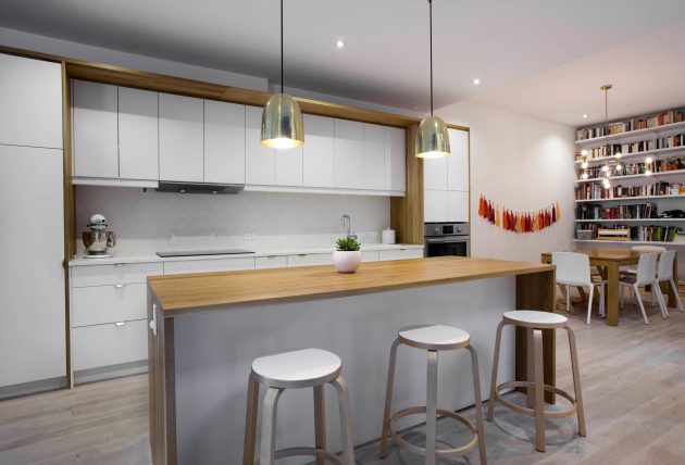 Open-plan kitchen renovation with breakfast bar