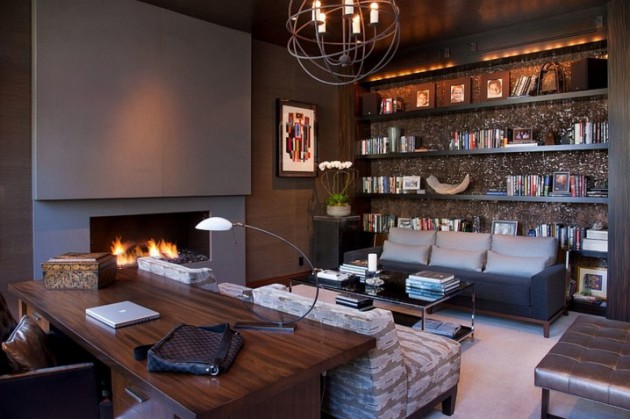 Selection and decorating the fireplace, will depend on where it is located. The fireplace in the bedroom will look different from the one in the living space. The decision on the decoration will depend on the room and its color. If you want sophisticated and beautifully decorated home office, you need to add fireplace. The design of the fireplace need to fit the style of the room. That way you will add pleasant feel, and you will enjoy to work from home. On the other side, you will have wonderful home office, that will result with productive work. Below you can see some inspirational examples how to decorate home office with fireplace. Take a look and maybe you will find inspiration. Enjoy!