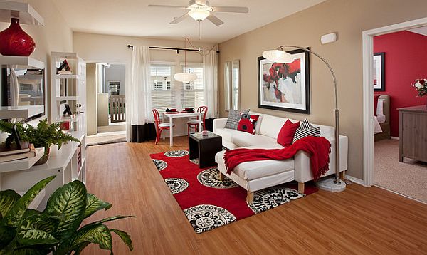 It is known that the red color has an effect on the human psyche. It is a vivid color, which warms, stimulates mental and physical, and promotes physical activity. Red is the color number one with which we can accentuate certain parts, while with black – white combination, is synonym for elegance. Red can be nice combined with the devices used in the home, so it breaks the sterile white walls. One side of the wall in the room can be of red brick facade, which will give a very nice look across the room and will fit nicely with the whiteness of the walls. For example, a pair of decorative red pillows on a white sofa, will act very tasty. Small commode for leaving some little things, in red, will dominate the space and cause a beautiful comments!