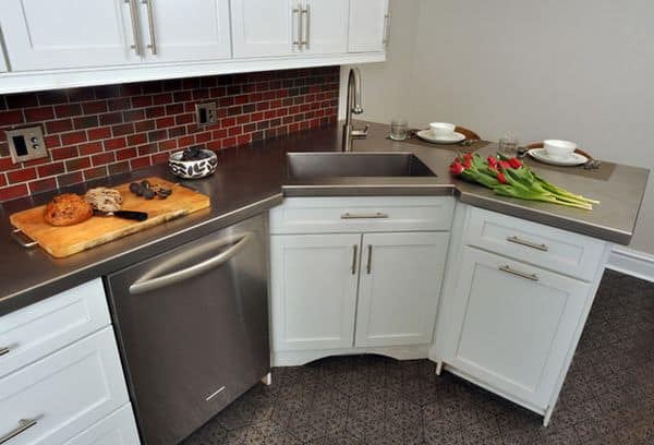 In the kitchen, the corners are not always properly used, and therefore there is a lack of the space, and it leads to nonfunctional kitchen space. There are several interesting solutions how to edit this unused space, but for today we present you one little more different idea. It is about designing kitchen with corner sink. It will give special charm to the kitchen,and the space below the sink can be used for storage. Take a look our functional solutions, and you might find many interesting ideas!