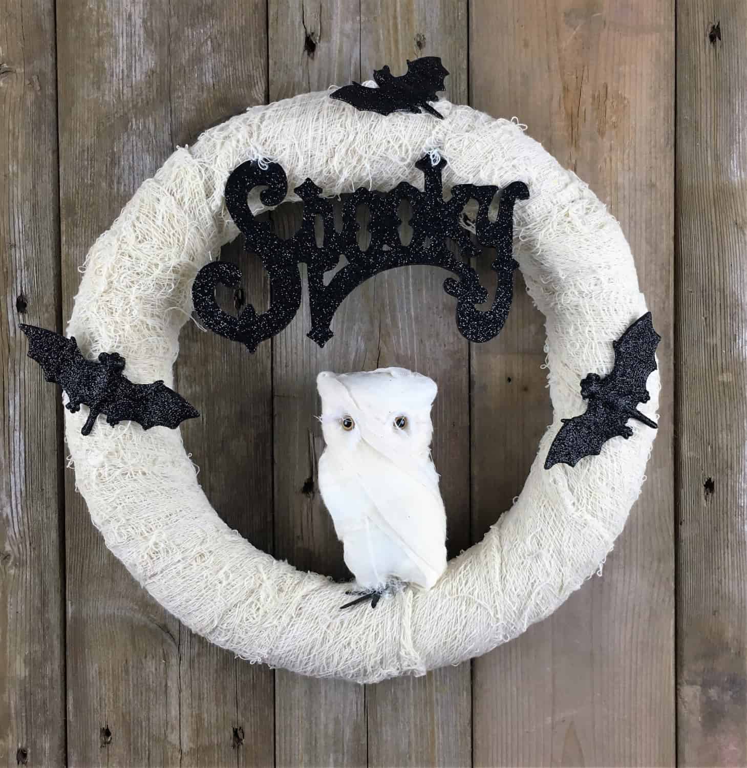 Spooky Halloween Mummy owl wreath