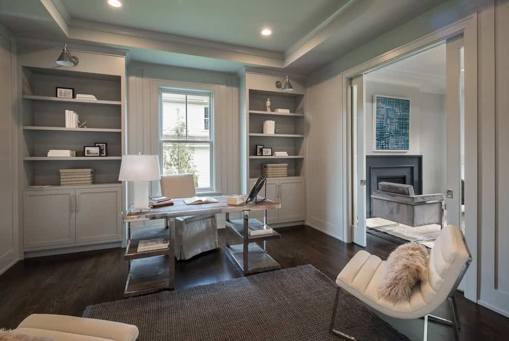 The transitional home office is a very interesting addition to the home. First of all, it will provide you with a very comfortable workplace which is something that people who are lucky enough to have a job that can be done from home can afford. But the transitional home office is also a valid addition to your home even if you can’t work from it. Why? Well, it doesn’t have to be a workplace. It can be your study room, it can be your hobby room. You can use it to take care of any paperwork or bills or you can use it to do some research online. You don’t even have to dedicate an entire room to it because it can easily be combined with another room as you’ll see below.