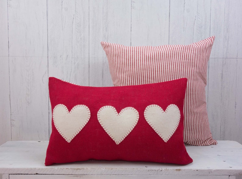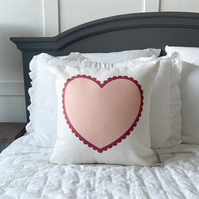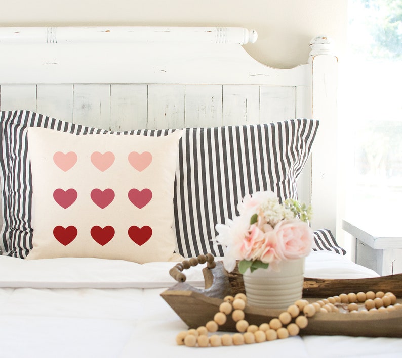 7. Hearts Valentine’s Day Throw Farmhouse Pillow Cover