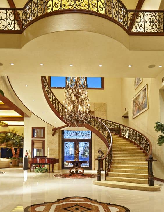 Editing the area around the staircase is a task that is often forgotten, and remains out of focus regardless of the size of empty space that occupies. You need to take care about the whole design, the space around them should not be ignored, because the neglect or imbalance in the arrangement, can produce the opposite effect than desired. In addition we present you one collection of some beautiful entrance staircase designs with luxury touch that will amaze you for sure!