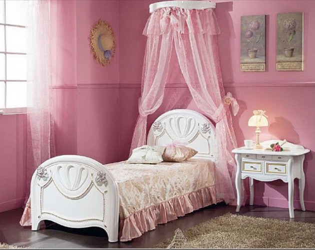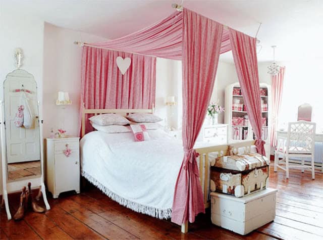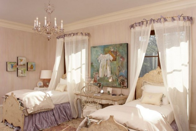 In the rooms for girls use motifs with butterflies, hearts, Hello Kitty motifs, motifs of flowers, motifs from nature and the like. you should take care of every detail: paint the walls, mattress, bedding, curtains, bedside tables, chandelier, shelves, pillows, chair. There is a lot you need to take care in arranging rooms for your princess. Every parent knows their child best. And everyone will invest a maximum of love and effort. We present you some fascinating canopy bed designs for little girls. Look at the fabulous children’s rooms below and enjoy!