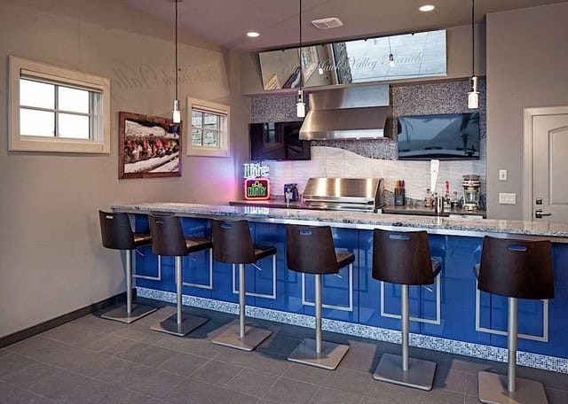 Most suitable places for setting up home bar are dining room, living room or part of your kitchen. Those who have a living room with a billiard table, home bar can be placed there. It will bring additional style and will complements the interior. Select the color and material for the production, according to the color of the walls, the furniture and the room where you plan to put bar. For the dining room, use neutral colors and tiles and in the lobby could use wood – light or dark or marble. If you still want to be with high style, you can use chairs upholstered with leather.