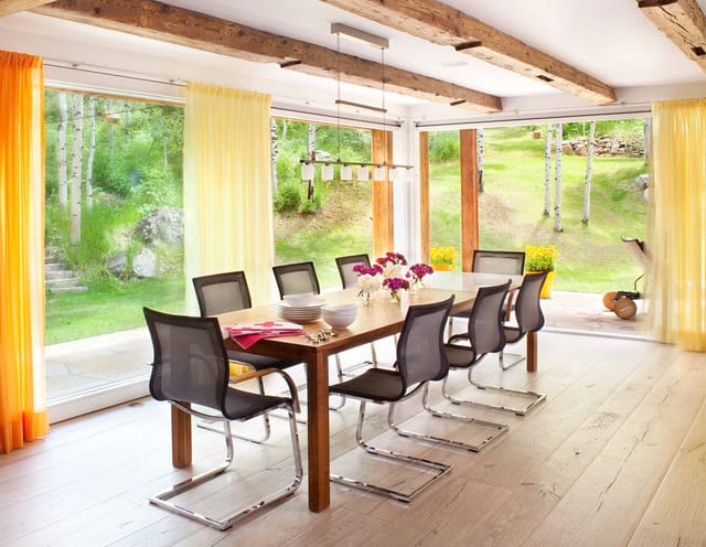 The following designs of rustic dining rooms that you are going to see share most of their features with the other interior designs that we have featured such as the rustic kitchen, bathroom, bedroom and living room.